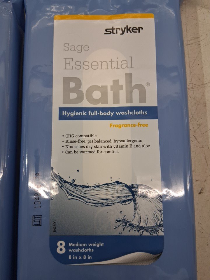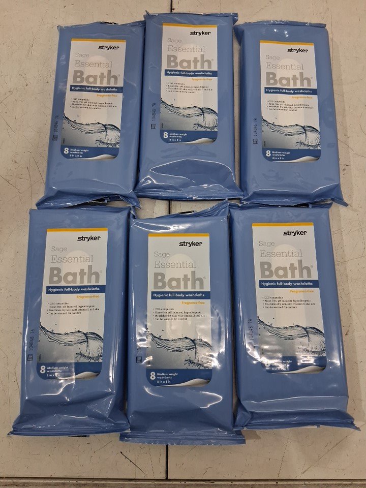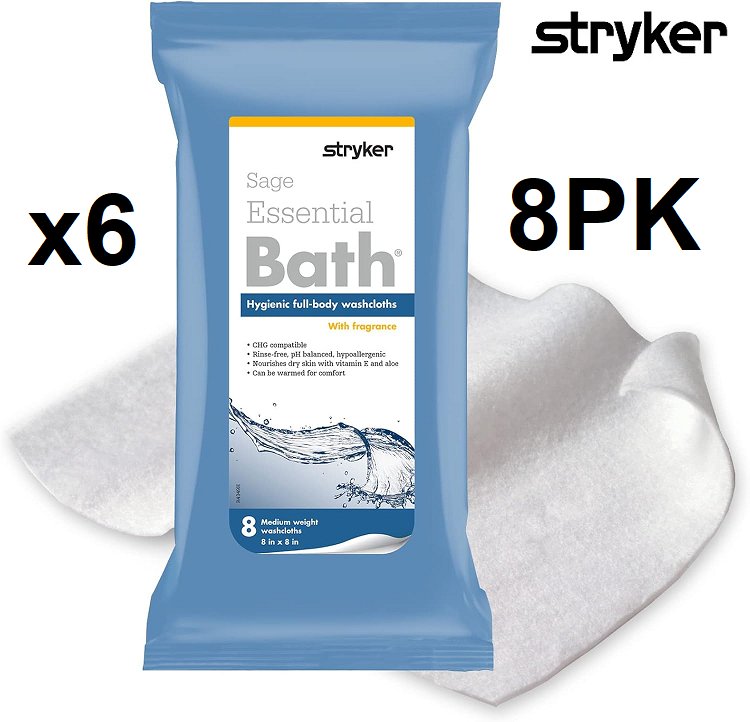 (6) 8pk stryker Sage Essential Bath Cleansing Washcloths - 8" x 8" each - 48 cloths total - white (model: 062935)