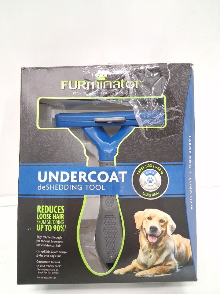 furminator undercoat deshedding tool - large dogs 50lbs - LONG hair - blue/grey