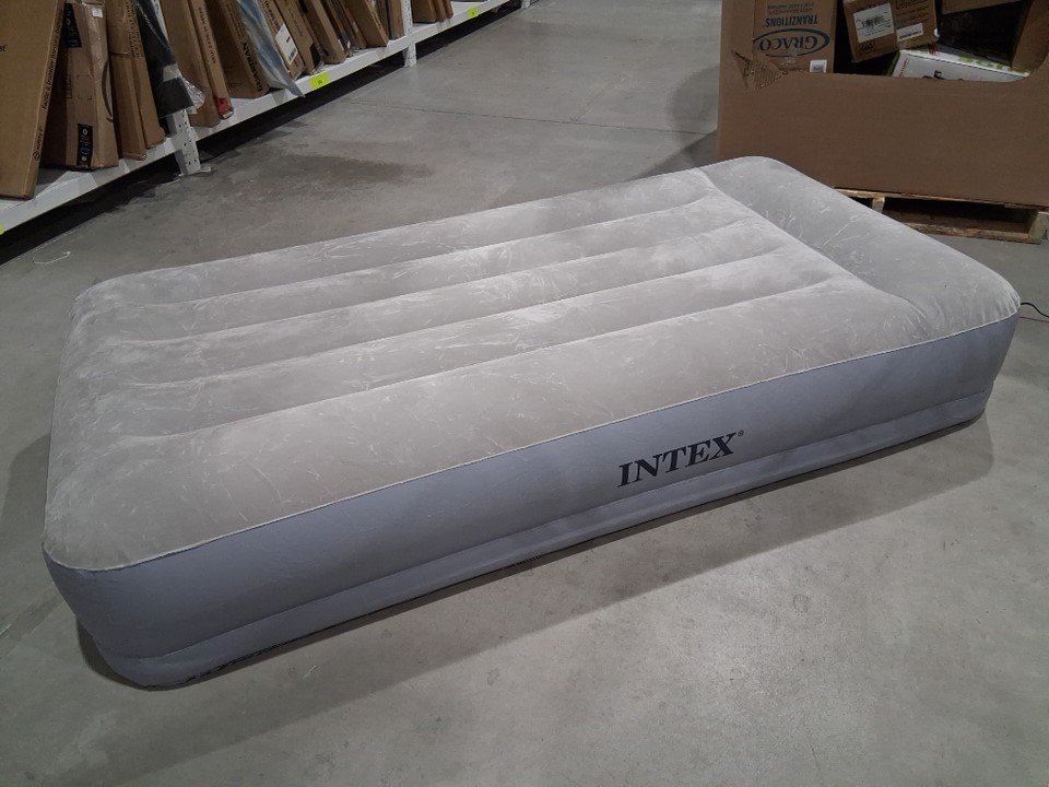 Intex Dura-Beam Standard Pillow Rest Mid-Rise Air Mattress With Built-In Electric Pump - Twin 12" - Grey (Model: 64115ED)
