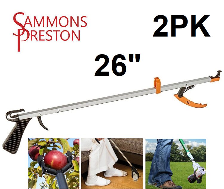 2pk Sammons Preston Easireach II multipurpose Reacher grabber - 26" - black/silver/orange (model: aa8042)