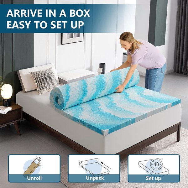 SAKURAHOME Memory Foam Soft Gel Infused Mattress Pad Bed Topper - 2" - FULL - WHITE/BLUE