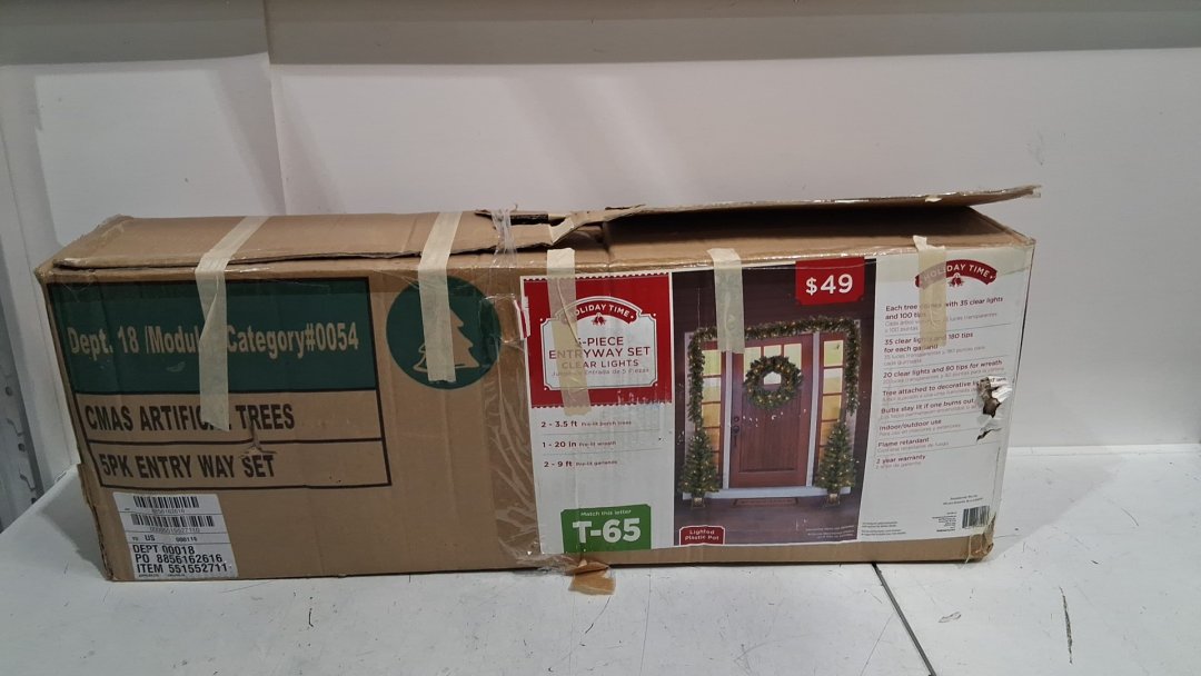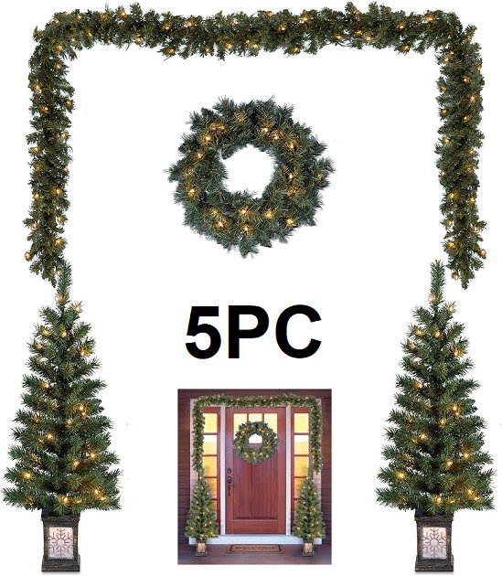 5PC Holiday Time PRE-LIT Christmas Decor FOR ENTRY WAY - GREEN