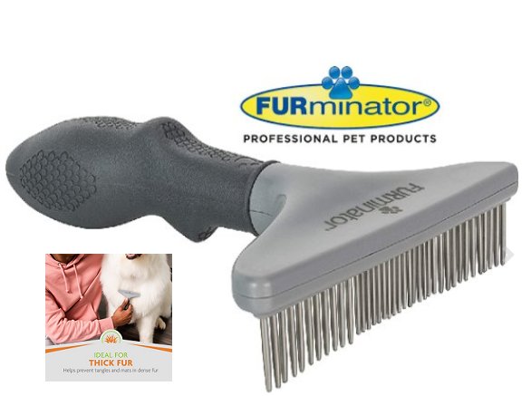 FURMINATOR GROOMING RAKE BRUSH - BEST FOR DOGS & CATS WITH THICK FUR - BLACK/GREY