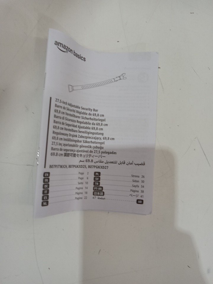 AMAZONBASICS ADJUSTABLE SECURITY BAR - 27.5" - 45" - BLACK (MODEL: AB-DH303-BK)
