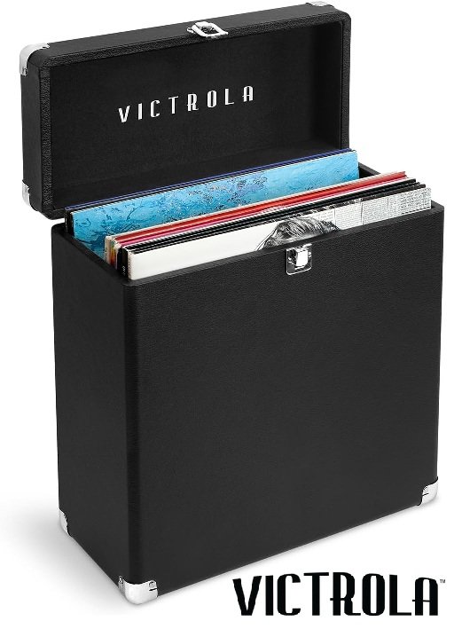 victrola collector vintage style vinyl record storage/carry case - holds 30 records - black (model: vsc-20)