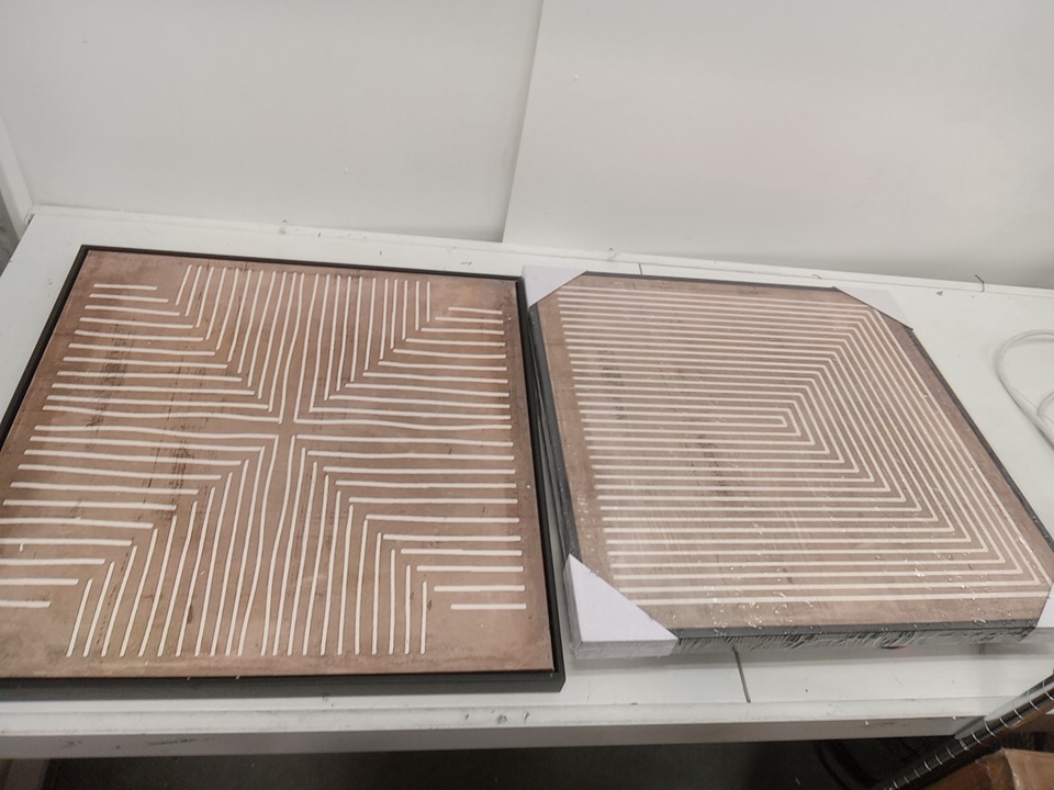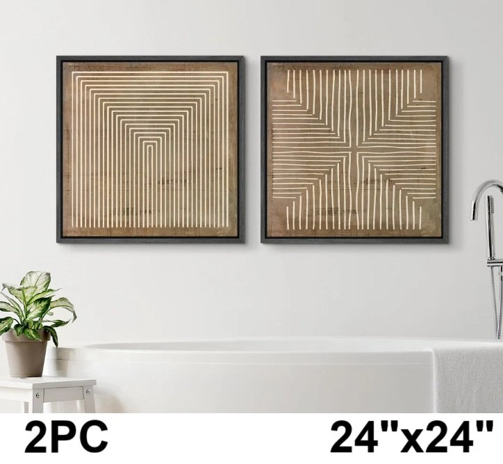 2PC Geometric Abstract Line Minimalist Framed Canvas - 24"X 24" - BROWN