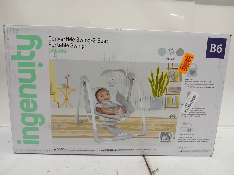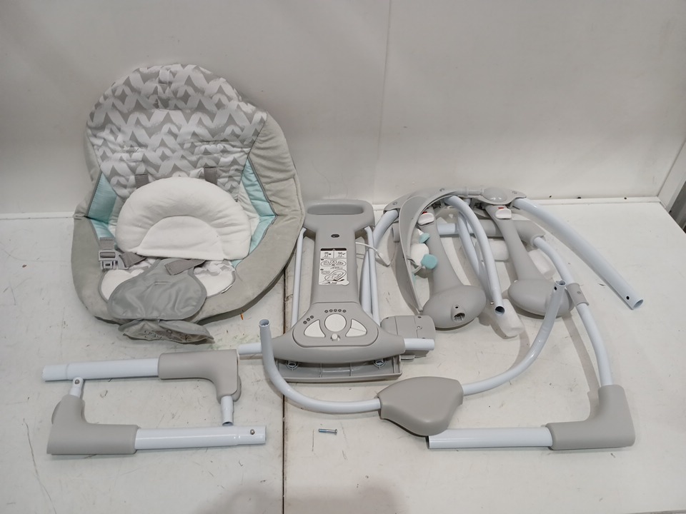 INGENUITY convertme 2-in-1 compact portable plug in automatic baby swing and infant seat - 0 to 9 months - 6lbs to 20lbs - grey (model: 12189-es)