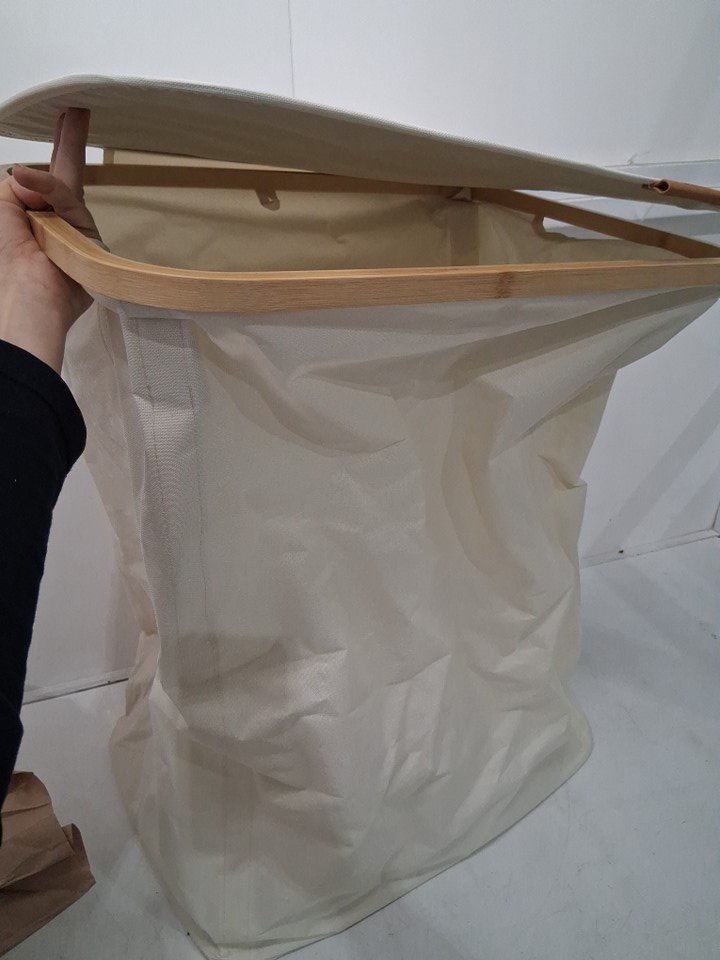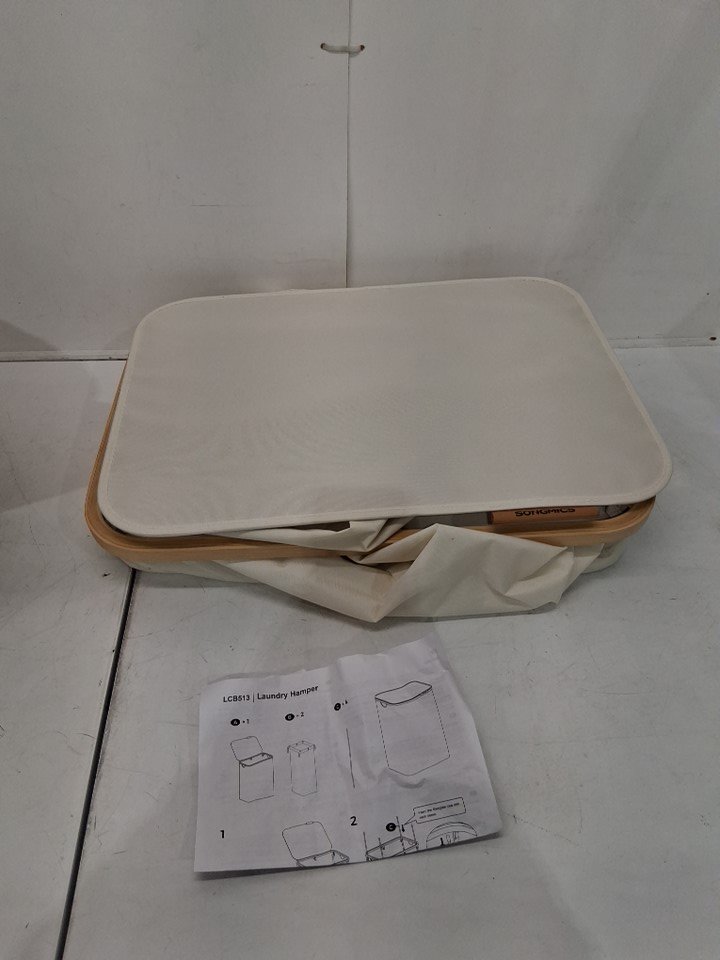 SONGMICS Laundry Hamper with Lid, Removable Mesh Liner, Bamboo Handles, 90L, cream