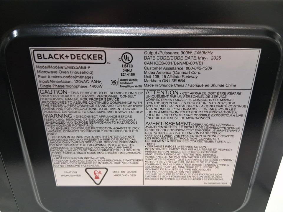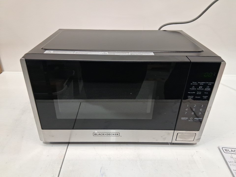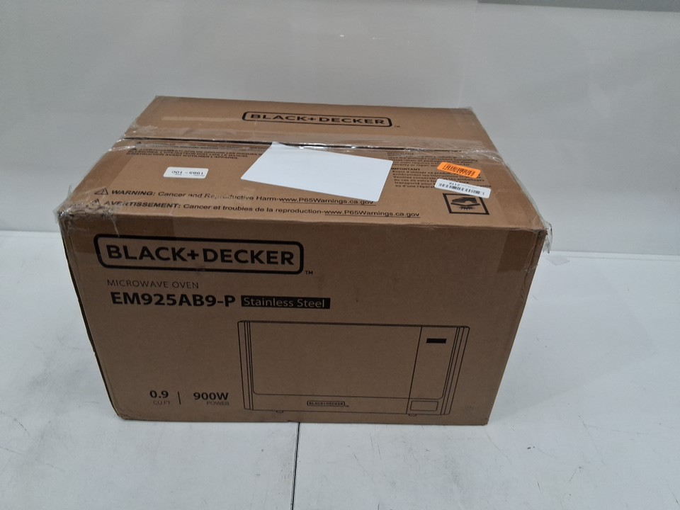 BLACK+DECKER Digital Microwave Oven with Turntable and Push-Button Door - 0.9Cu.Ft - Black (MODEL: EM925AB9-P)