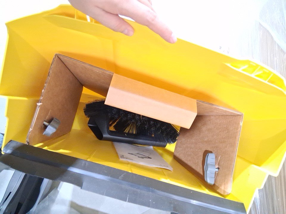 item has dust and other debris on it from previous use and only comes with one broom attachment