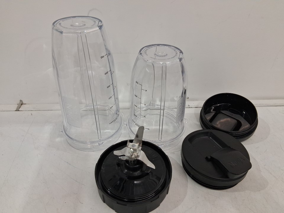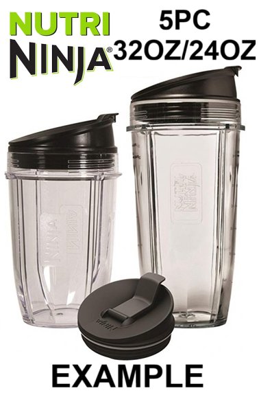 5pc ninja nutri blender cups with lids and blender blade - compatible with ninja nutri personal blender - 32oz and 24oz - clear/black