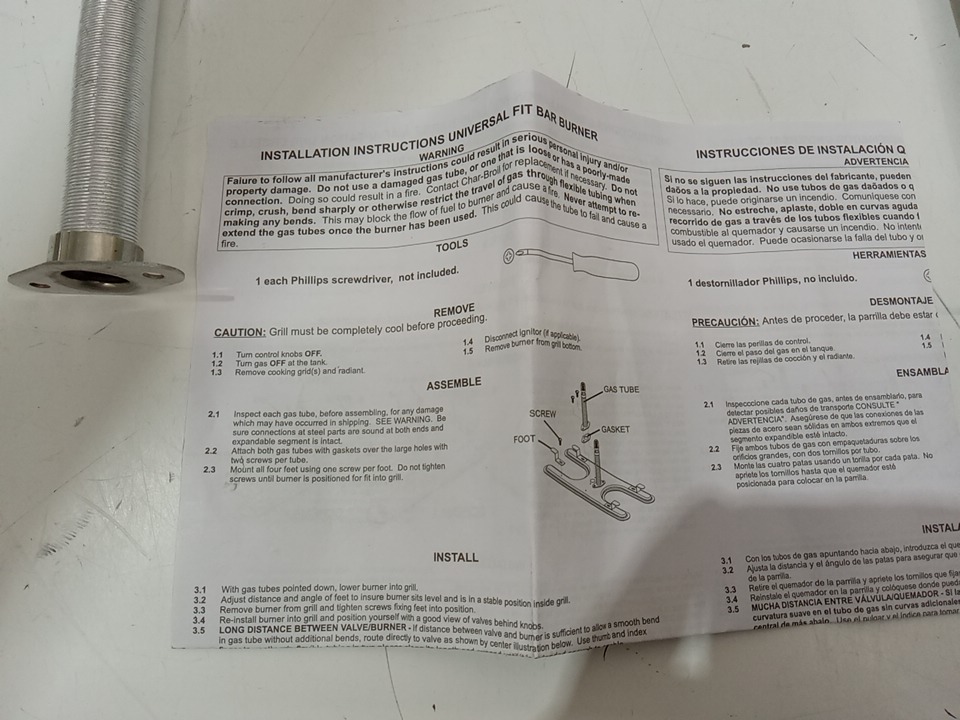 char-broil universal h burner replacement - 17.75" x 7" - silver (model: ‎4186254P05)