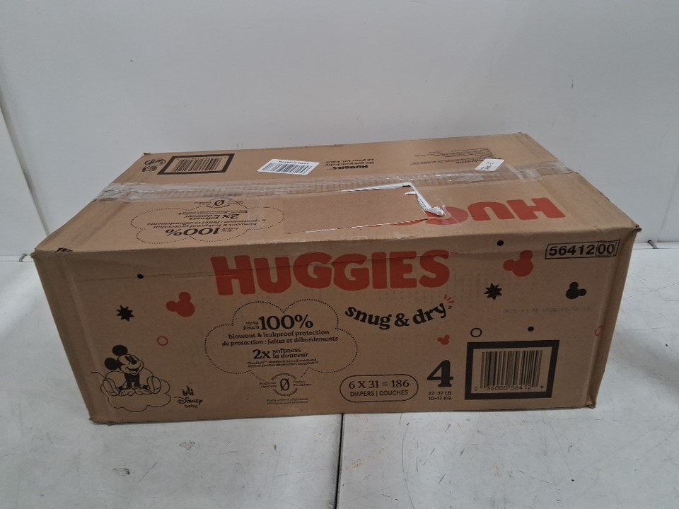 186pk huggies snug and dry diapers - size 4 - 22lb to 37lb - disney mickey mouse