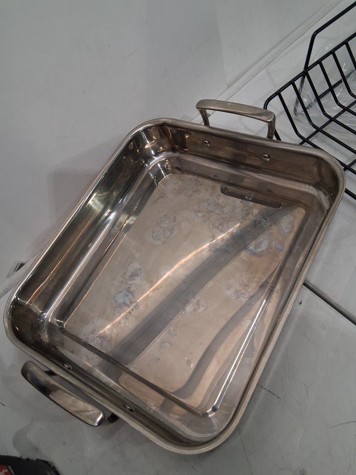 item has some finger/hand marks from previous use and also has minor food residue in rack please see pictures