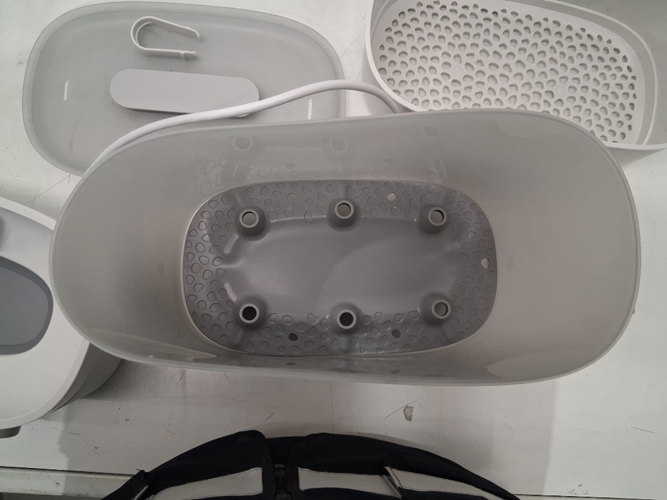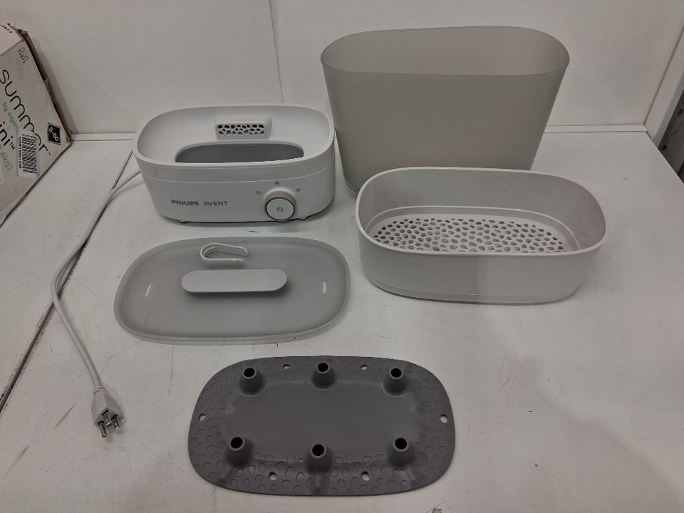 Side of dryer has small discoloration spots. and larger casing is slightly warped from shipping. Has been tested for power