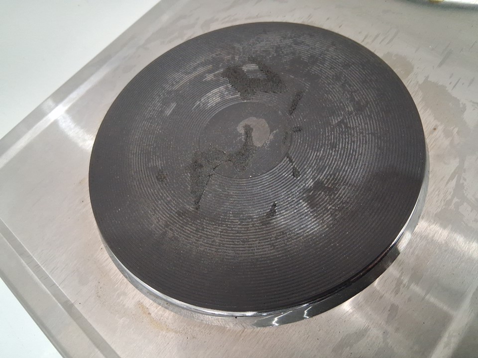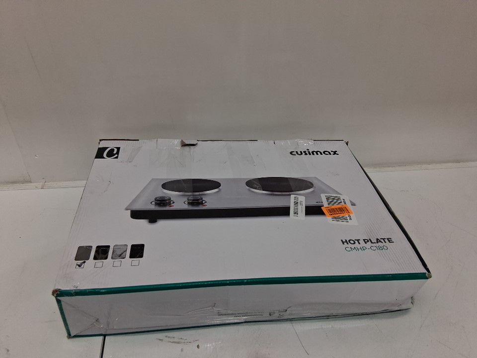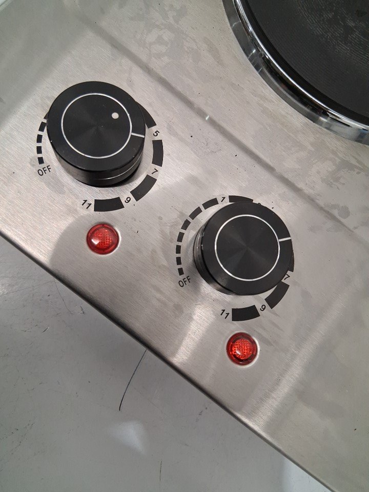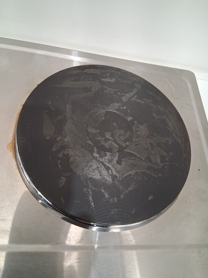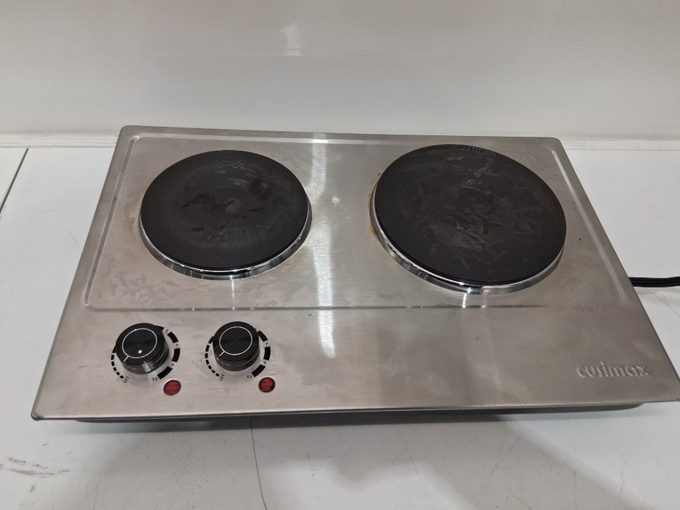 Item has some marks, burn off discard and discoloration on the burner plates and a few scratches and stains on the surface (see photos for surface). Tested for power.