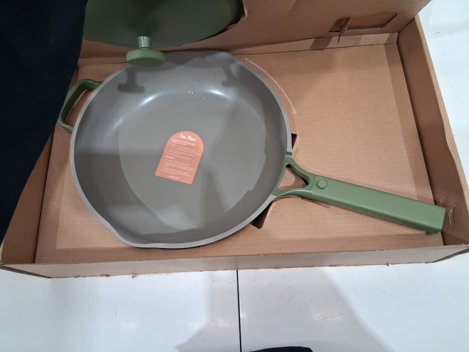 3PC our place non-stick toxin-free ceramic sauté always pan WITH BEECHWOOD SPATULA - 12.5" - sage green (MODEL: A-2812)