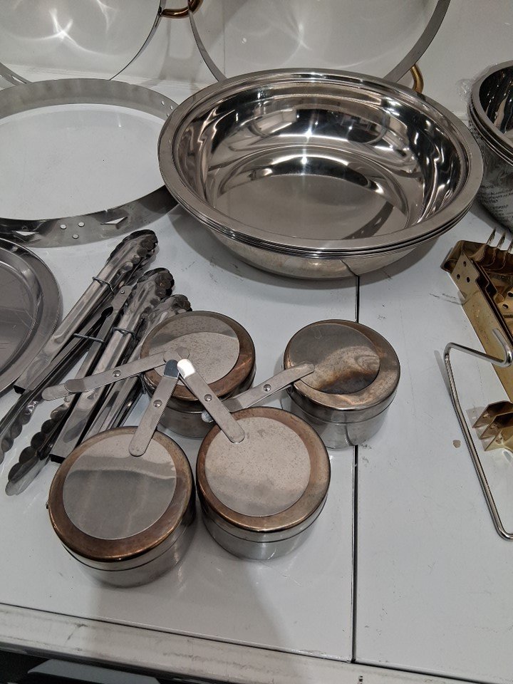 Please note item has light scuffing/water marks from previous use. The fuel holders have burn marks and dents (see photos for reference). The hardware came in loose, so some of the hardware may be missing.