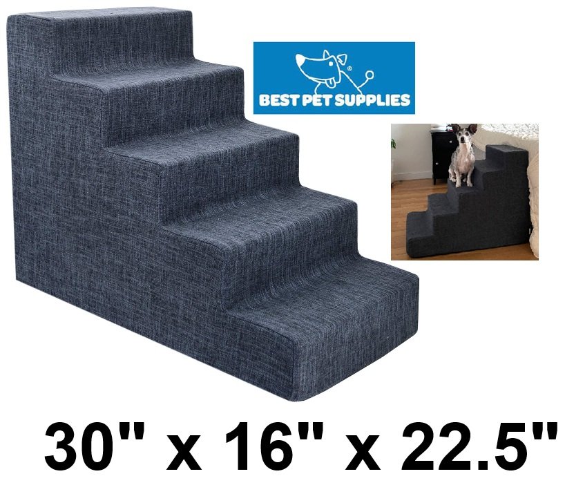 Best Pet Supplies Foam Pet Steps for Small Dogs and Cats, 5-STEP PORTABLE STAIRS, -30" x 16" x 22.5" -dark GREY (model:ST236D-L)