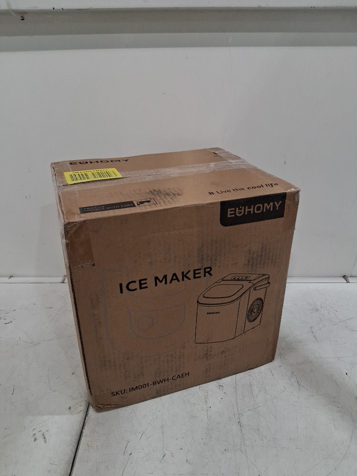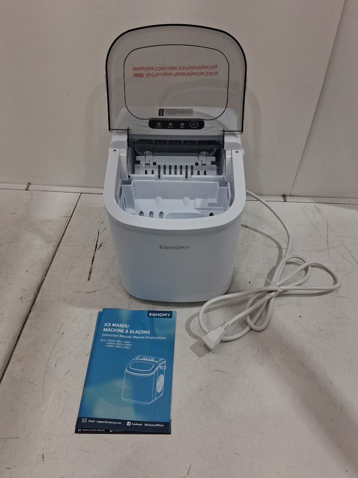 EUHOMY Countertop Ice Maker Machine with Handle, Basket and Scoop - MAKES 26LBS Per Day - WHITE - (MODEL:IM001-BWH-CAEH)