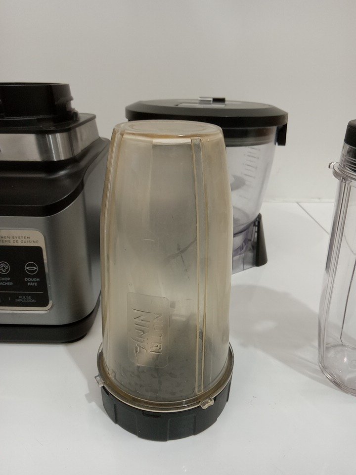 The blades of the 72oz mixer and the 64oz container wasn't spinning but the blender is working. this might be an easy fix for someone handy. there is food residue on the containers.