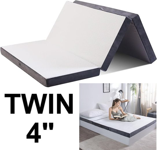 SEDEFEN TWIN TRI-FOLD MATTRESS WITH SOFT BREATHABLE COVER - TWIN 38" X 75" X 4" - WHITE/GREY
