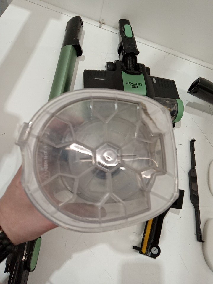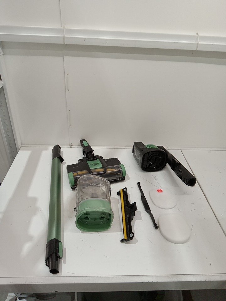 there is dirt in the canister and in the wand attachment the charge cord is missing and a replacement can found at https://www.amazon.ca/Adapter-Charger-Compatible-Replacement-Cordless/dp/B0969NCTCS?source=ps-sl-shoppingads-lpcontext&ref_=fplfs&psc=1&smid=A2QAHKW0CW5L4K