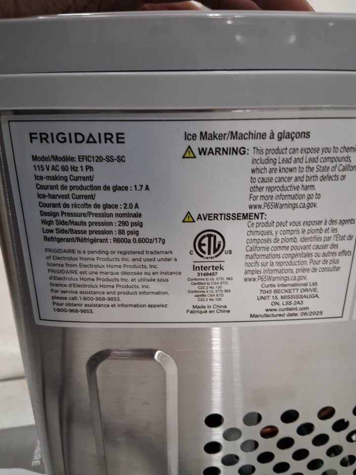 FRIGIDAIRE COUNTERTOP ELECTRIC ICE MAKER - 115V - MAKES 26LBS OF ICE/DAY - STAINLESS STEEL (MODEL: EFIC120-SS-SC)