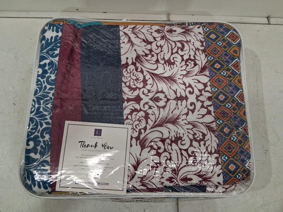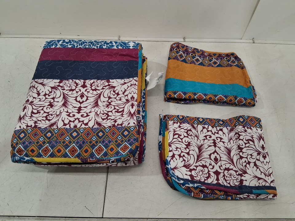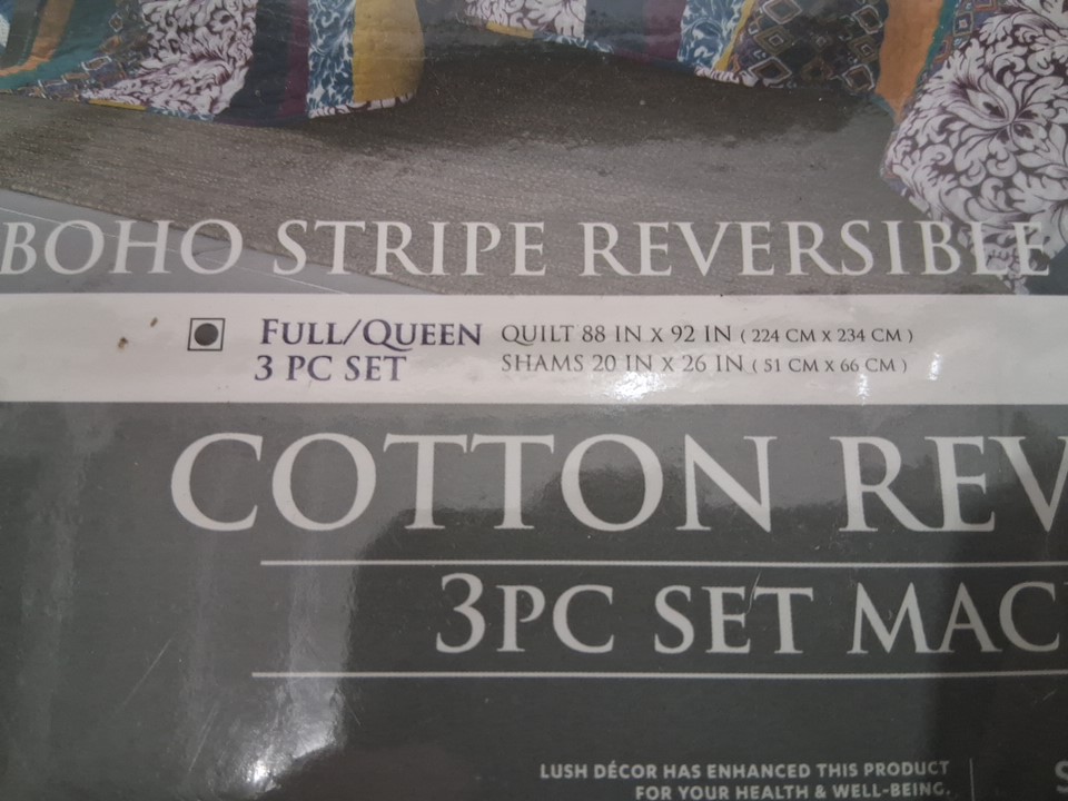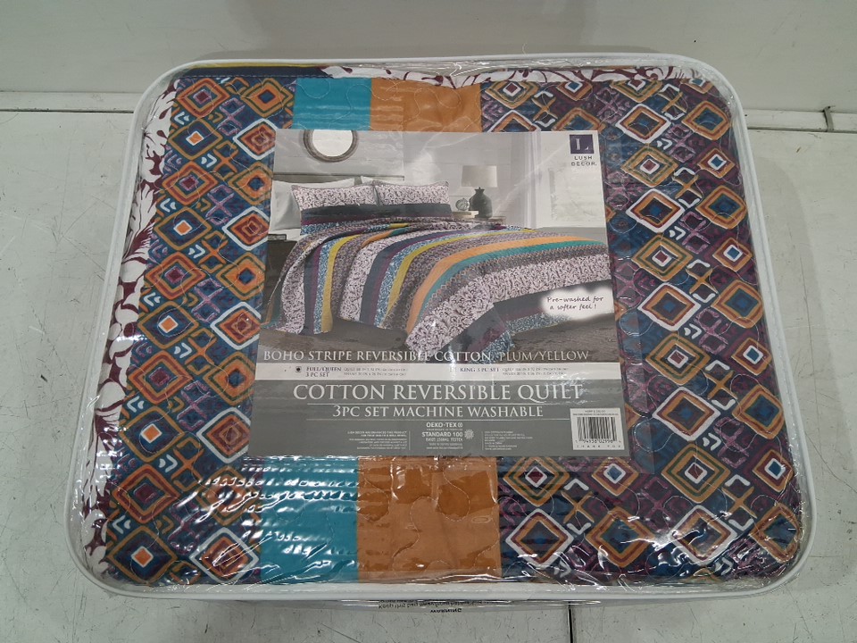 3pc Lush Decor Boho Stripe Reversible Cotton Quilt set - full/queen (88" x 92") - plum/yellow