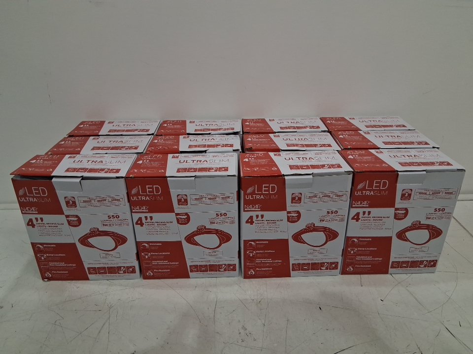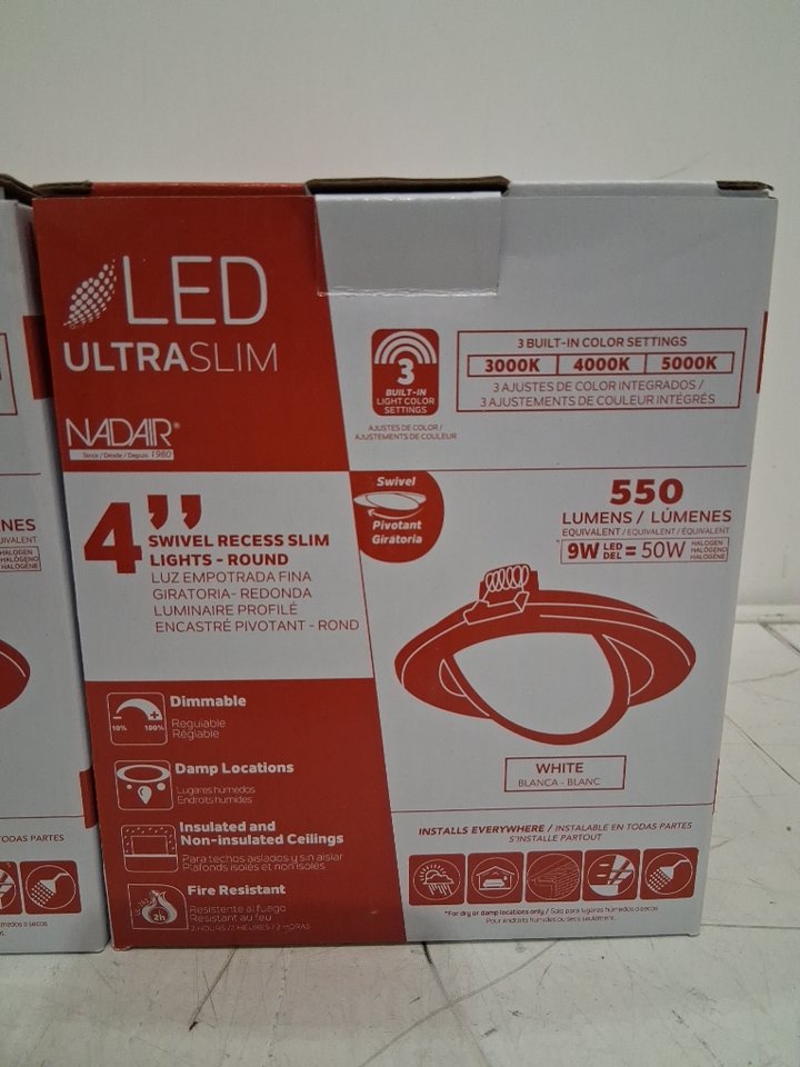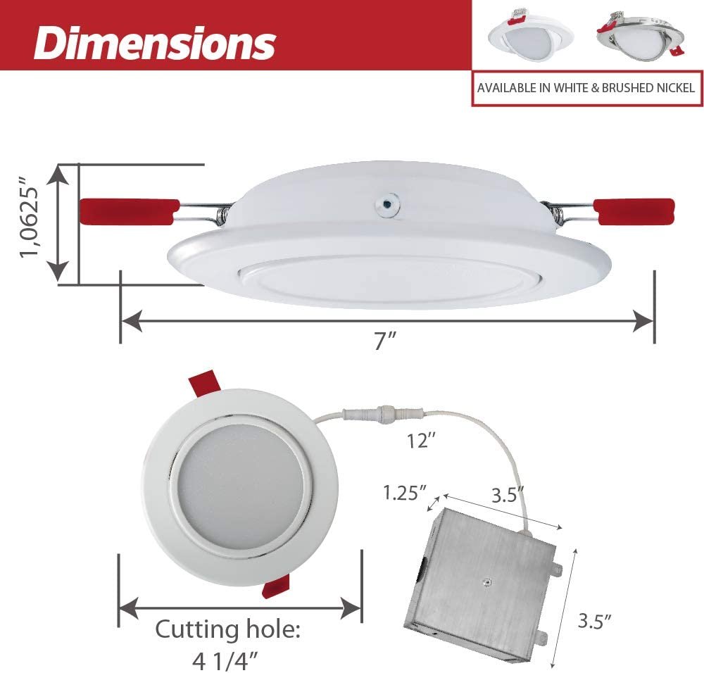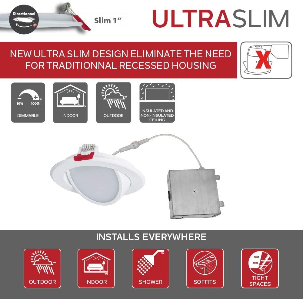 12PK NADAIR LED GIMBAL INDOOR/OUTDOOR RECESSED ULTRA SLIM DIMMABLE LED SWIVEL LIGHT FIXTURE WITH QUICK-CONNECT SYSTEM - 4" - 9W=50W - 550LM - WHITE/3000K/4000K/5000K LIGHT (MODEL: ‎SL4-550CT-WH)