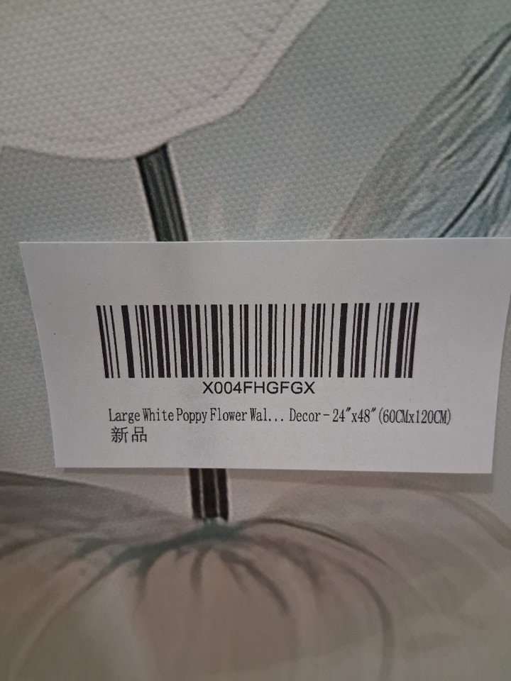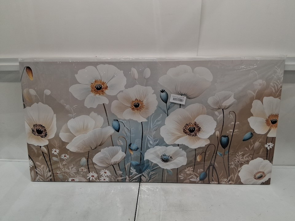 Elegant Large White Poppy Flower Wall Art Canvas - 24" x 48" - white/ brown/ blue