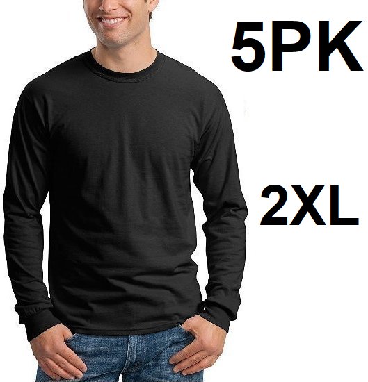 5pk MEN'S GILDAN ULTRA COTTON LONG-SLEEVE CREWNECK SHIRT - 2xl - BLACK