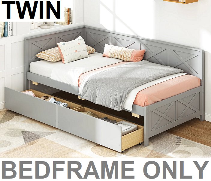 COSTWAY wooden bedframe with storage drawers - twin - grey (model: hu11129gy)