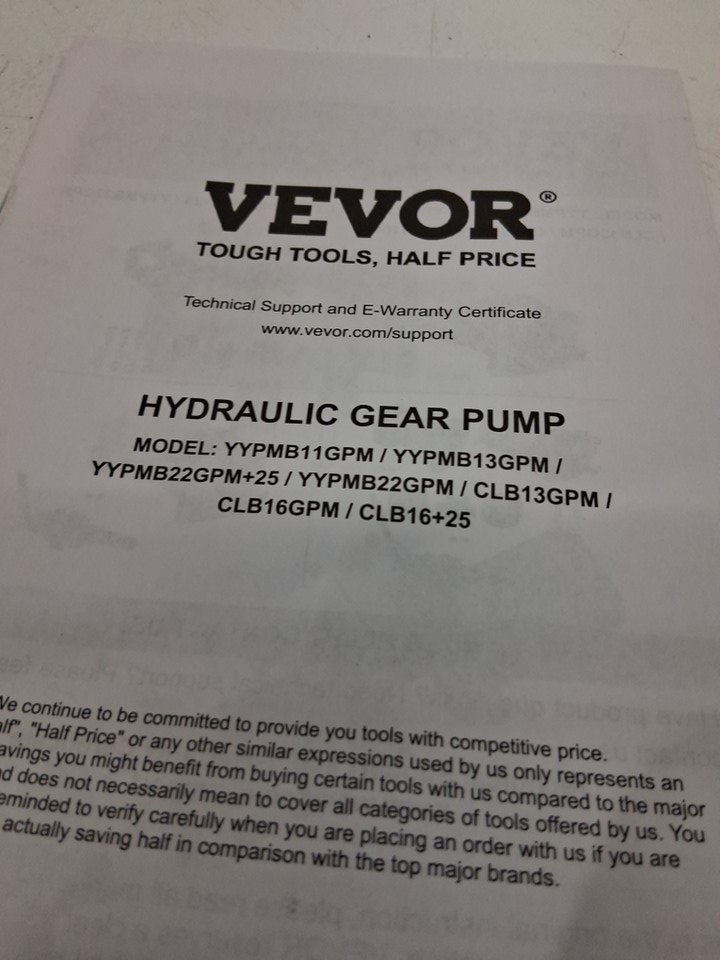 Vevor aluminum hydraulic wood log splitter pump kit for small engine - 4000PSI - 3600RPM - grey / black (model: yypmb13gpm)