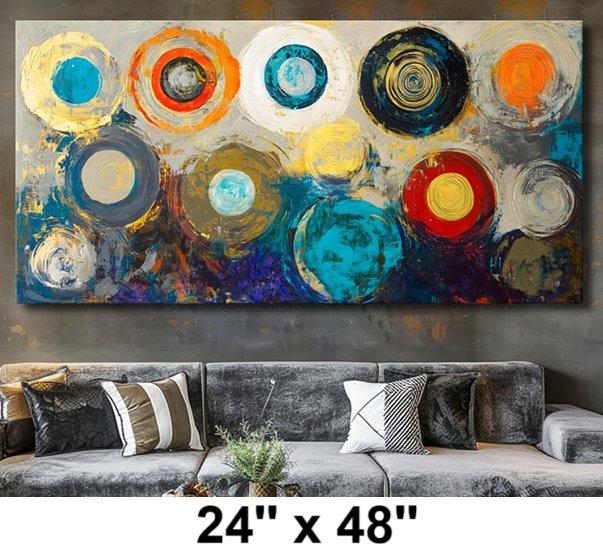 Abstract colourful circle canvas wall art - 24'' x 48'' - Multicolour