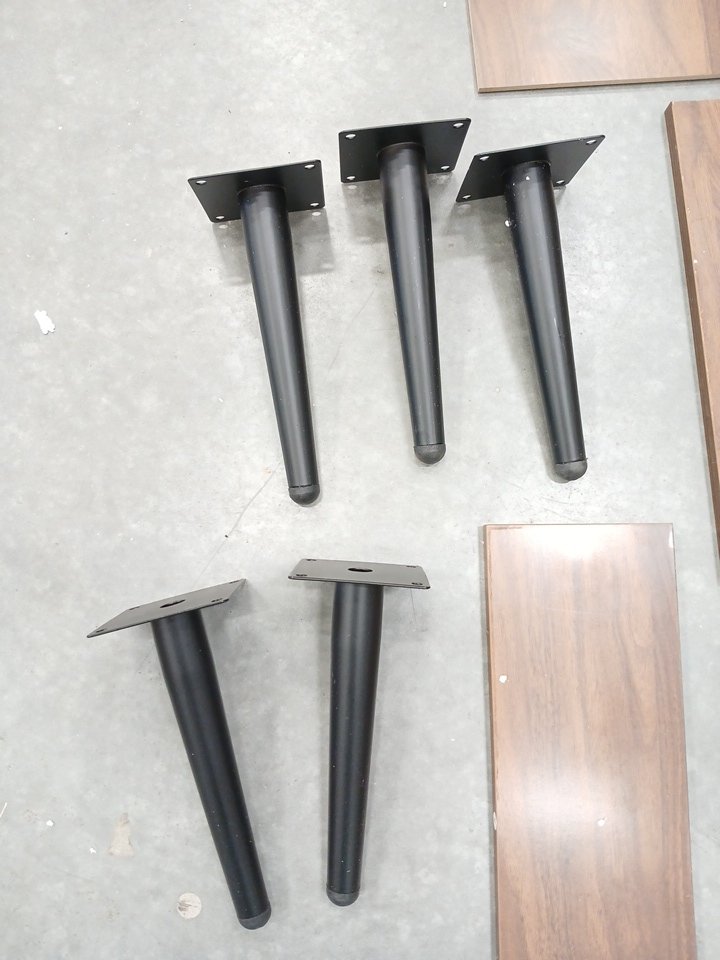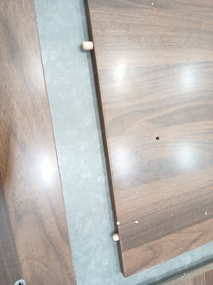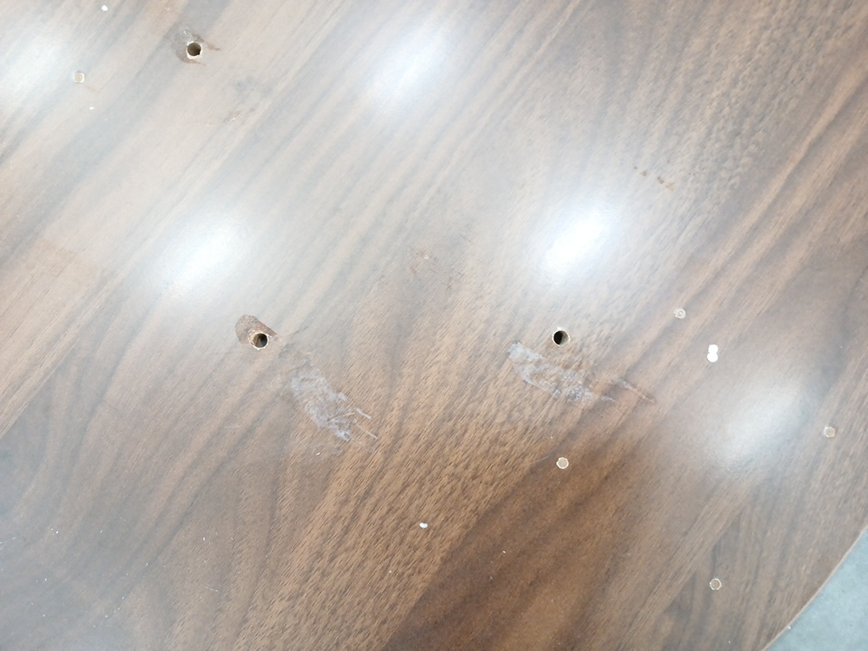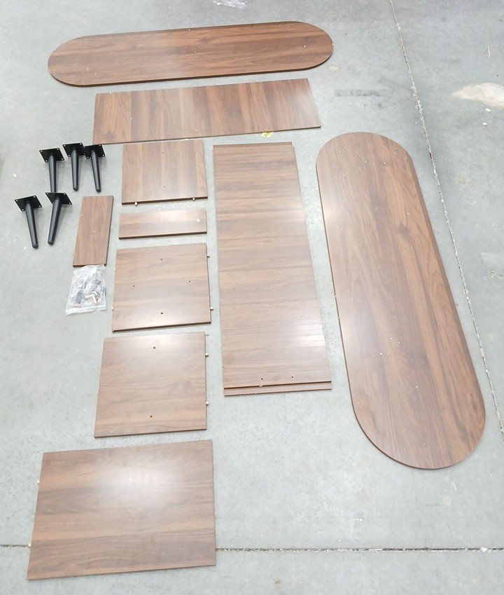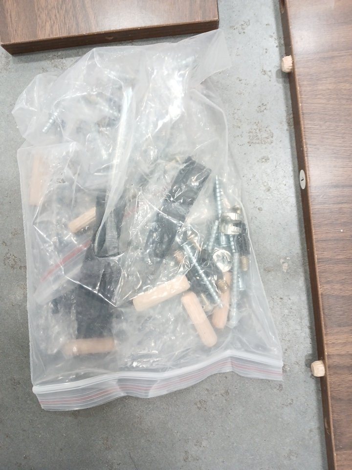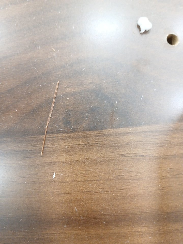 This item has scratches, the top board has a deep scratch especially, the top board has glue residue, and additional hardware may be required. This item has hardware already attached indicating previous assembly.