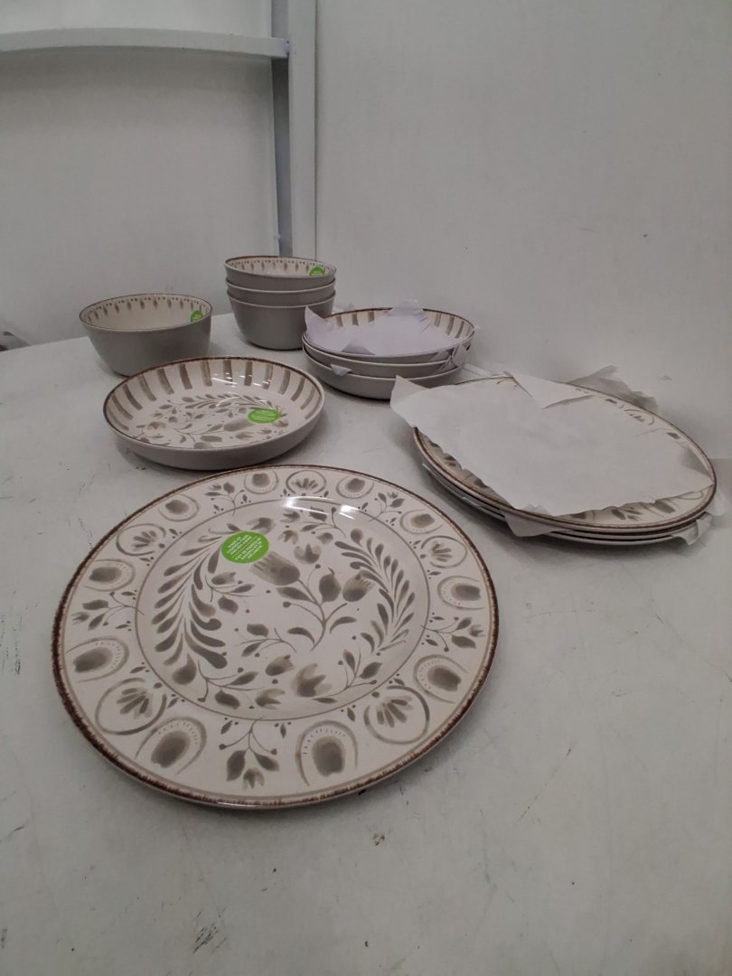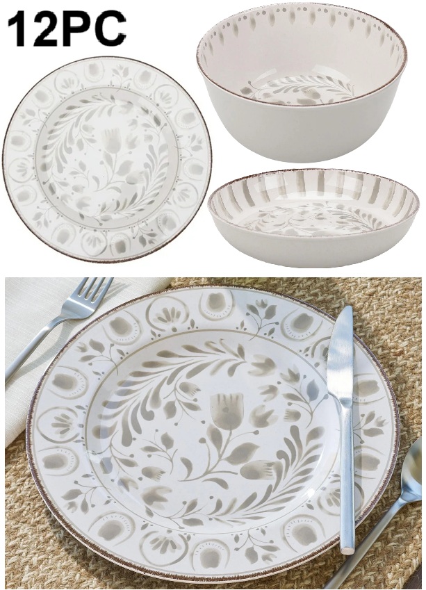 12PC Better Homes & Gardens Bamboo Melamine Dinnerware Set - 4 11" Plates - 4 8.5" x 1.5" Dinner Bowls - 4 6.3” x 2.8” Cereal Bowls - Grey (Model: 50700653/3600878621)