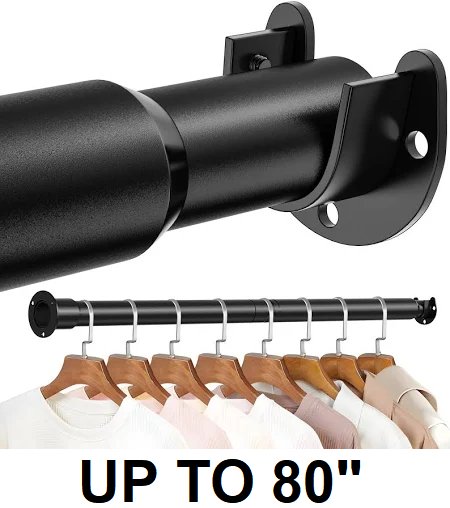Mavivegue Heavy Duty Adjustable Tension Closet Rod for Hanging Clothes - UP TO 80" - BLACK