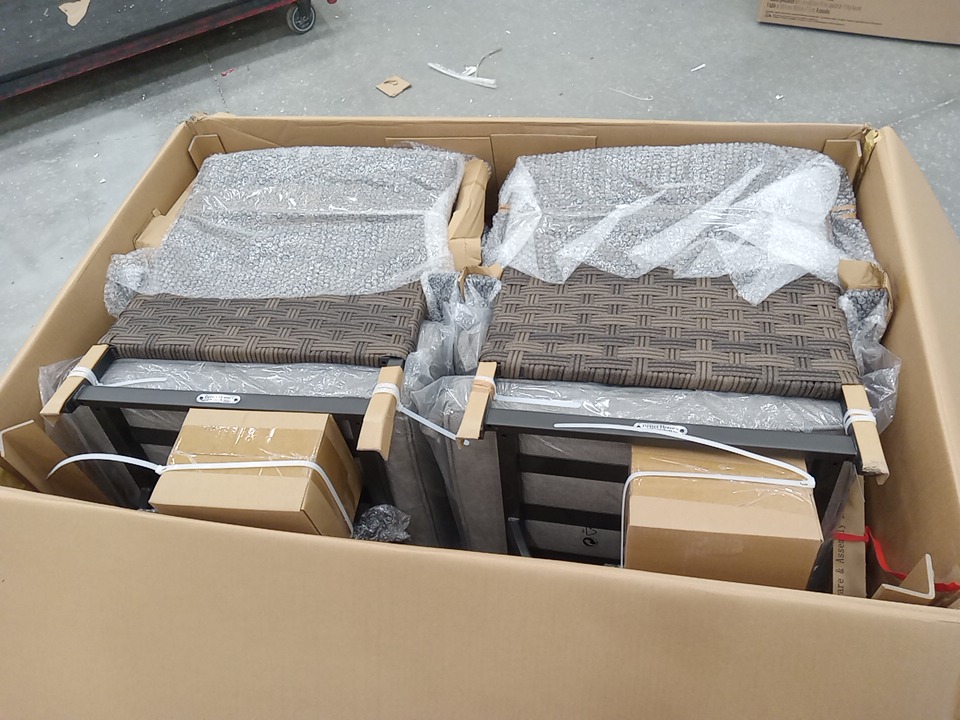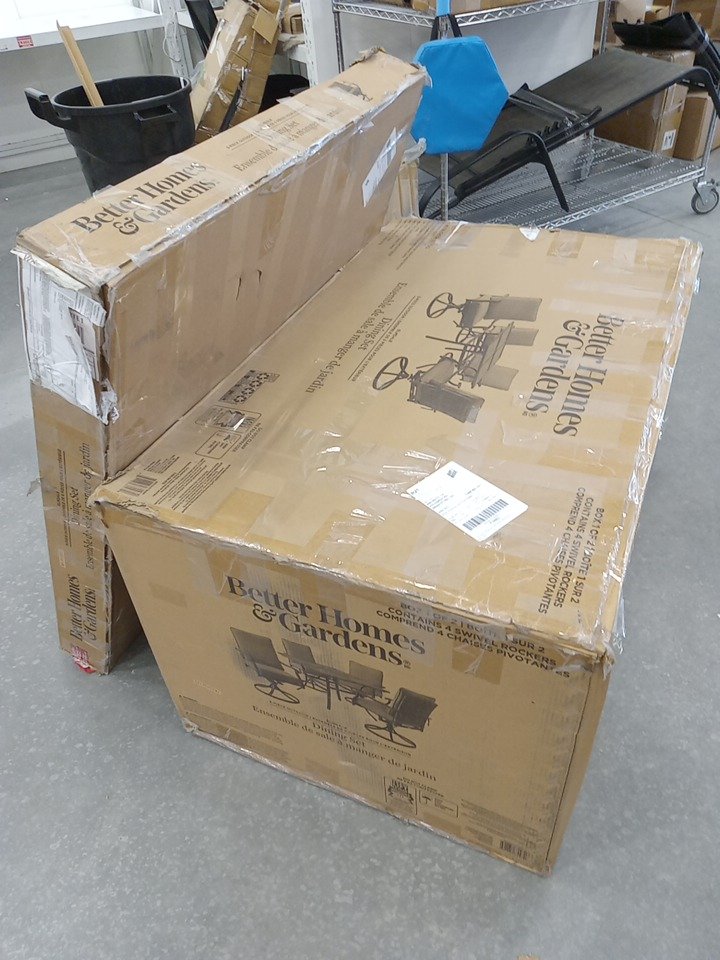 (2 boxes) 5pc BETTER HOMES & GARDENS elmadale outdoor patio dining set - 24" x 27" x 35.8" chair - 40.9" x 40.9" x 28.2" - grey (model: 50595562)
