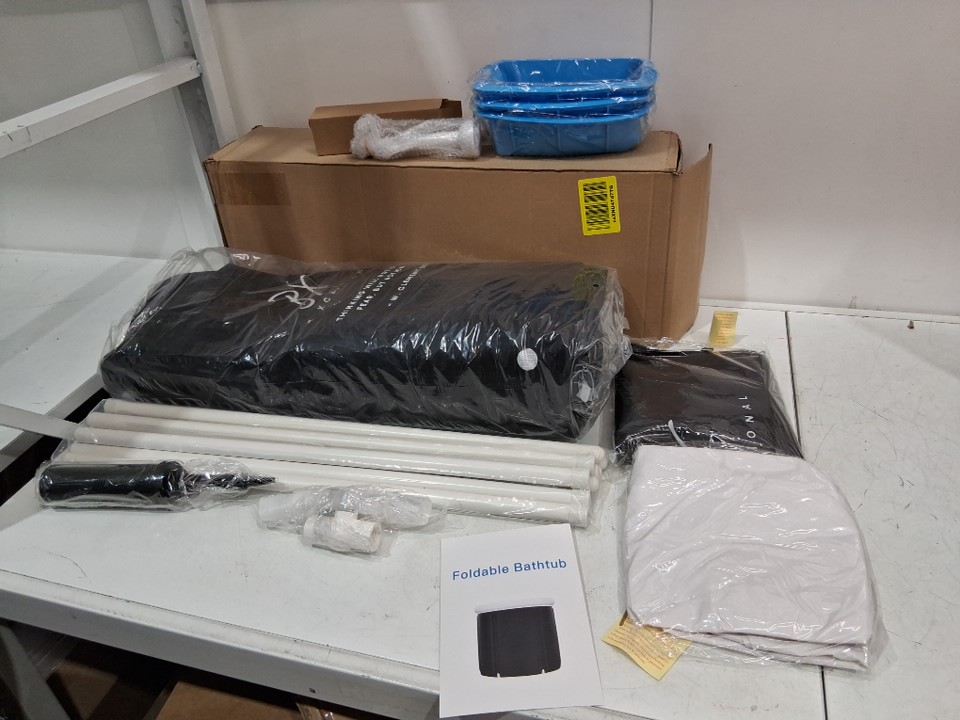 extra-large foldable portable indoor/outdoor bathtub with accessories - cold plunge tank - 116GAL - 30" x 30" - white/black