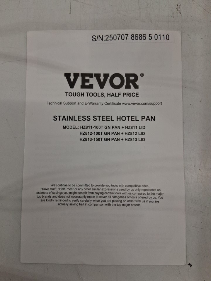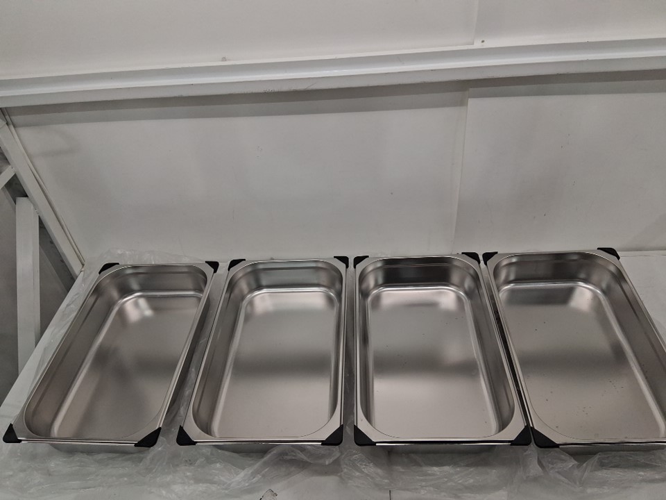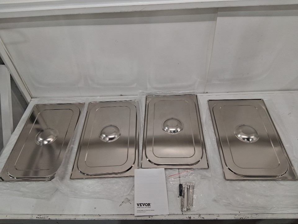 4PK Vevor Stainless Steel Hotel Food Tray Pans with Lids - 20" L x 12" W x 4" D - Silver (Model: HZ811-100TGNPAN/HZ811LID)