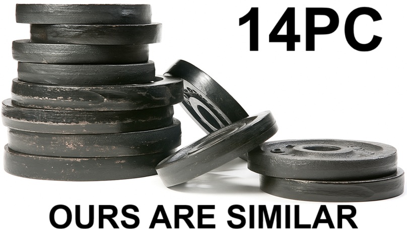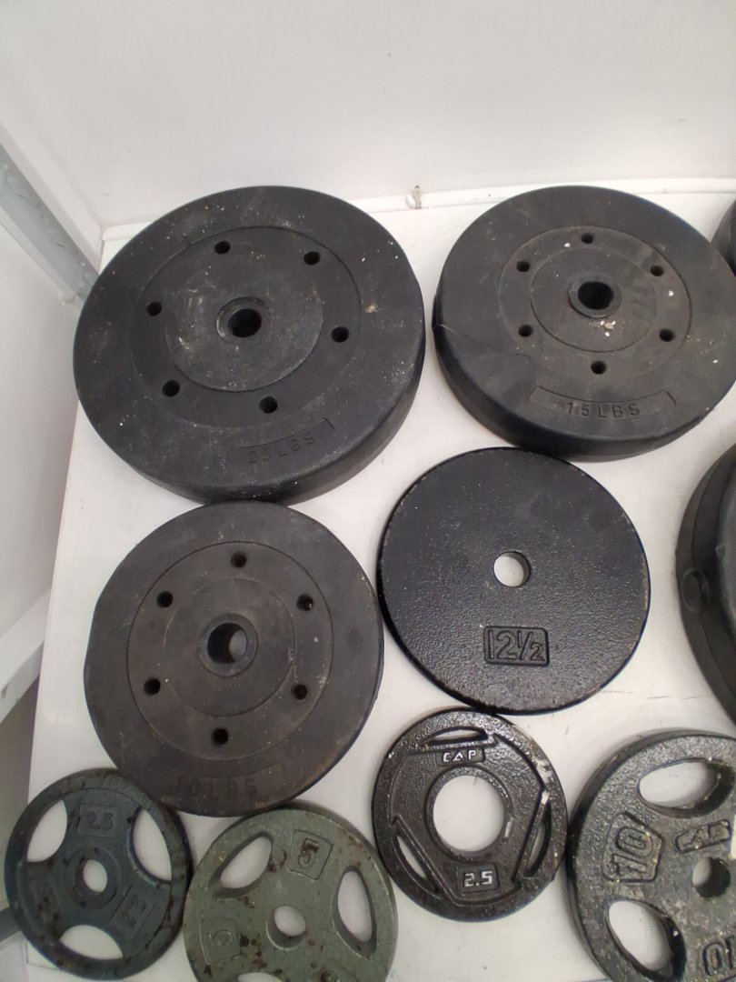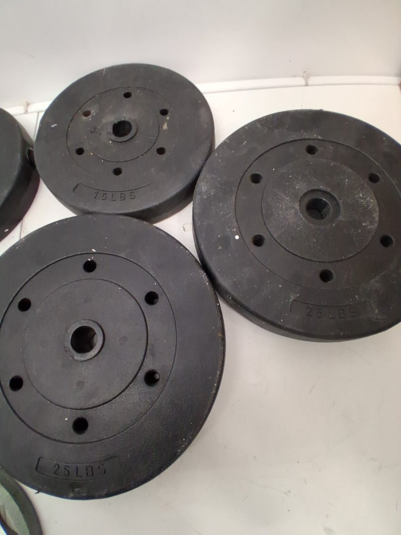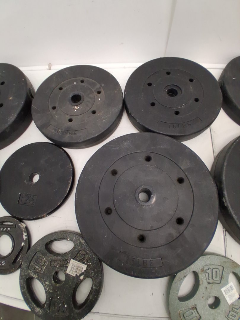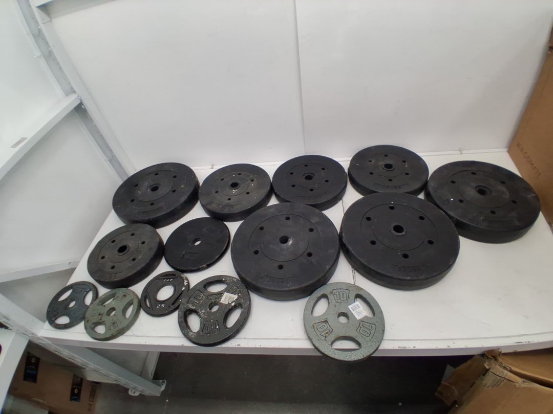 14PC Assorted barbell weight plates including 1 5LBS, 1 12.5LBS, 2 2.5LBS, 3 10LBS, 3 15LBS, and 4 25LBS - 197.5lbs total - Black