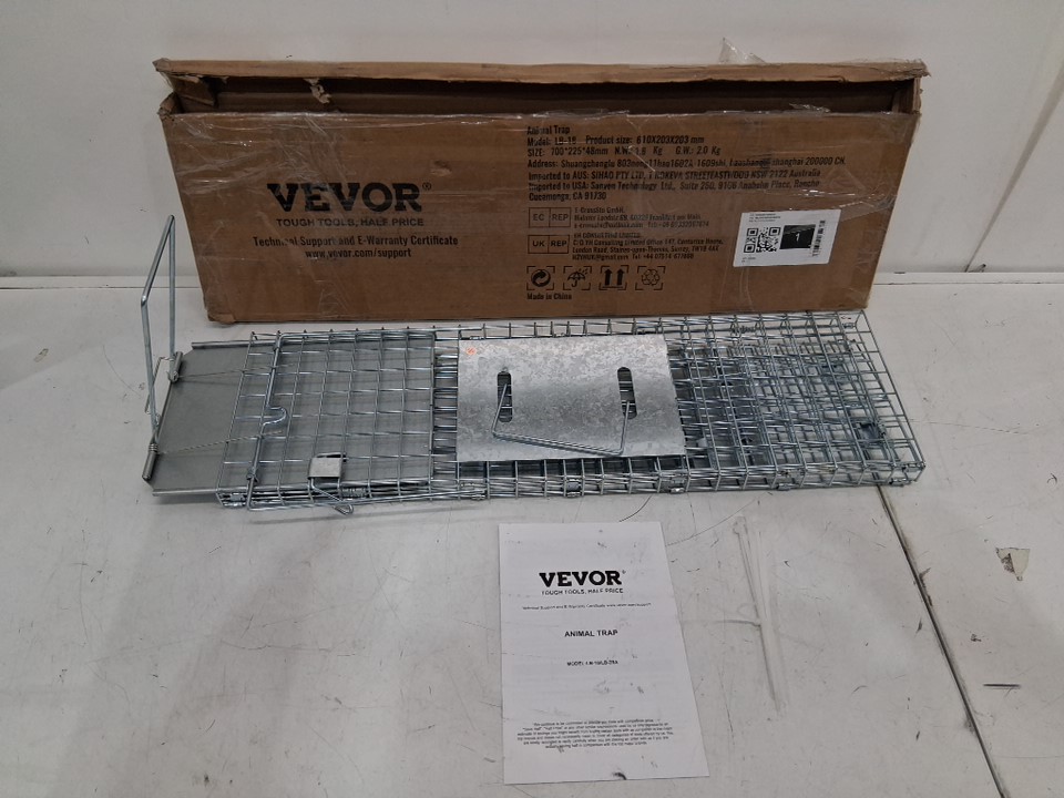 VEVOR HUMANE GALVANIZED IRON ANIMAL TRAP - 24" x 8" x 8" - SILVER (MODEL: LB-18)