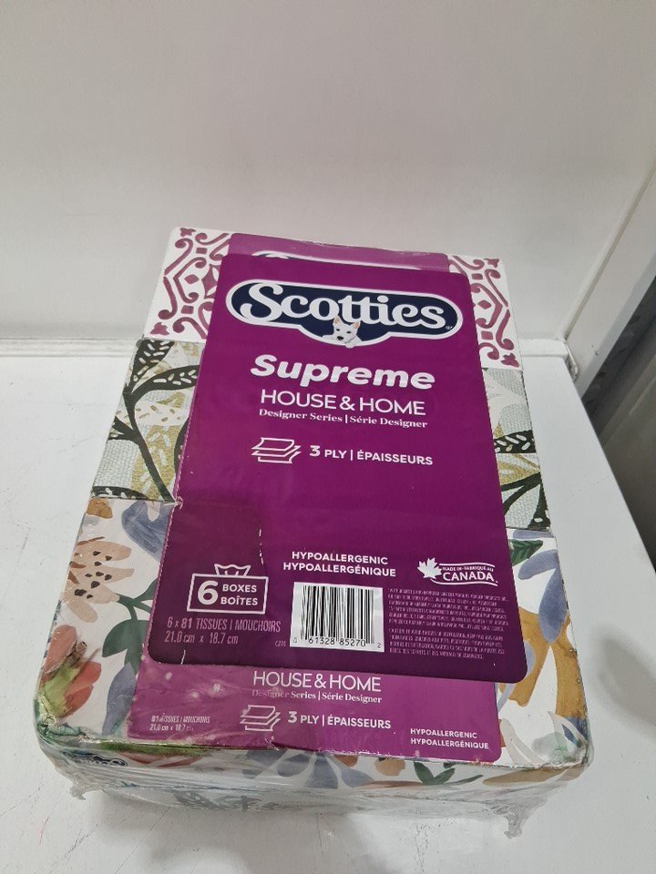 6pk (81 tissues per box) scotties supreme 3-ply facial tissues, Hypoallergenic and Dermatologist Approved