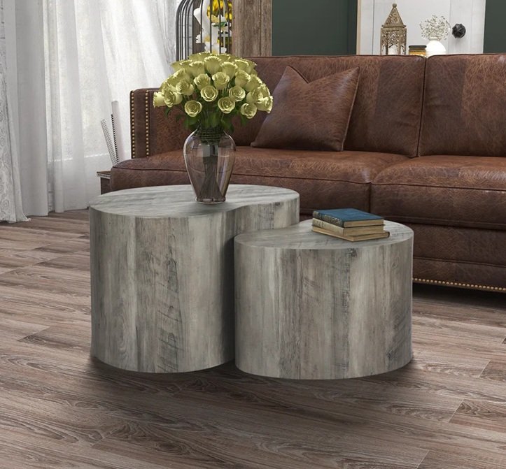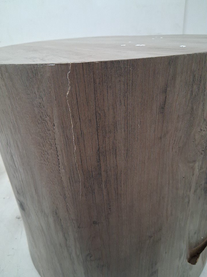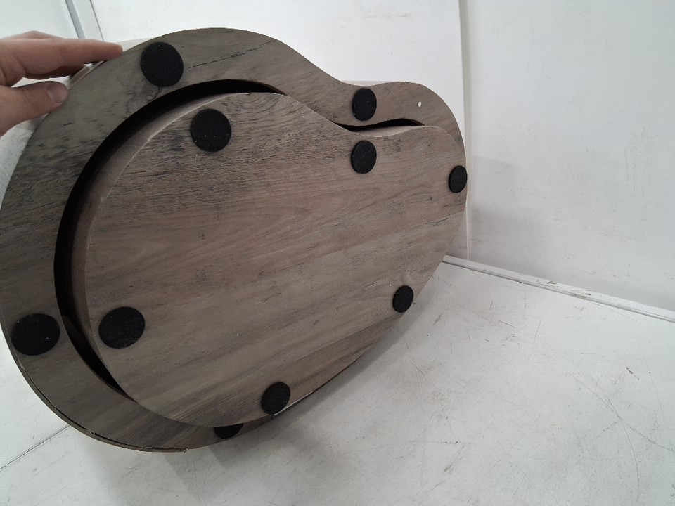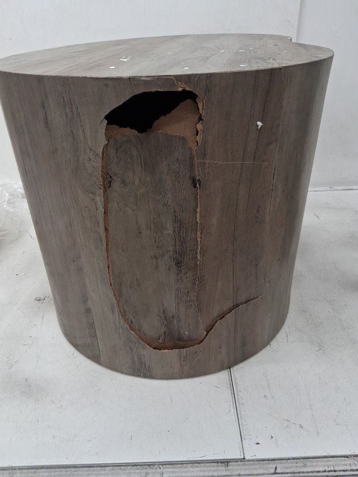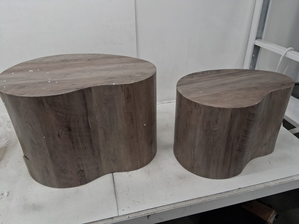 The larger table has a large crack/hole in the side of it due to shipping, doesn't appear to cause any stability issues but is very noticeable -see photos. Otherwise, the tables appear unused.