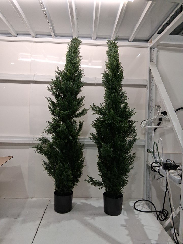 2pk Artificial potted Cedar Topiary Trees - 5ft - cedar green