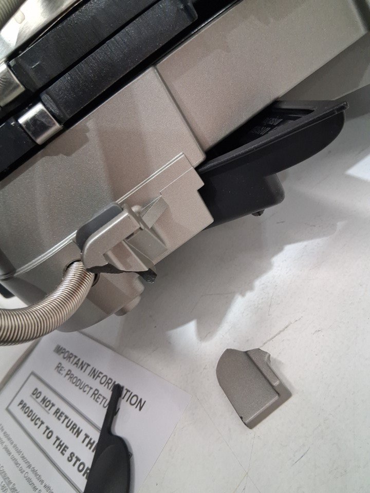 this item has a smell of previous use, but is clean. the back leg is broken, but the piece is there and can be easily glues or repaired. tested for power.