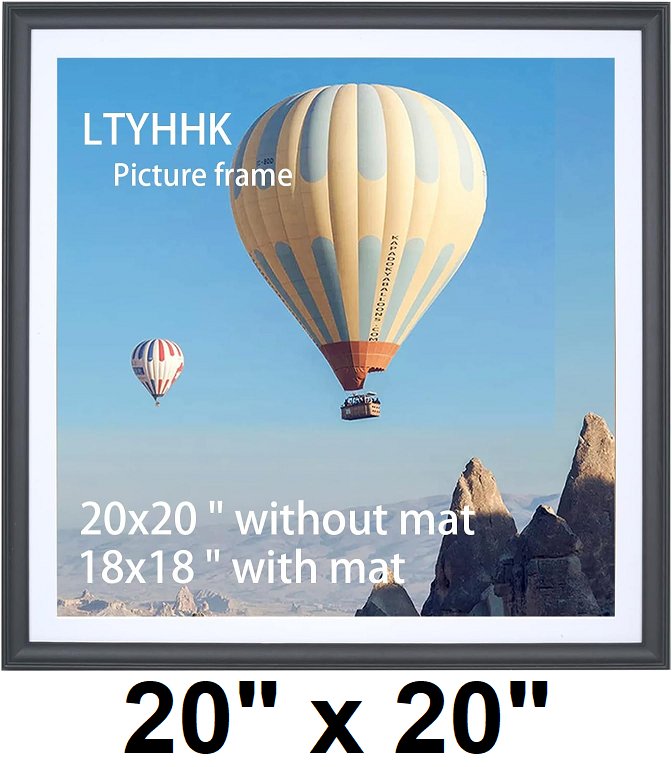 LTYHHK wooden matteed picture frame - 20' x 20" - without mat - 18" x 18" with mat - black