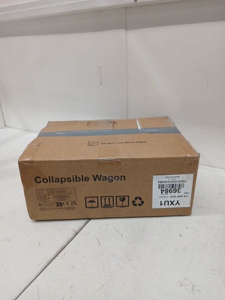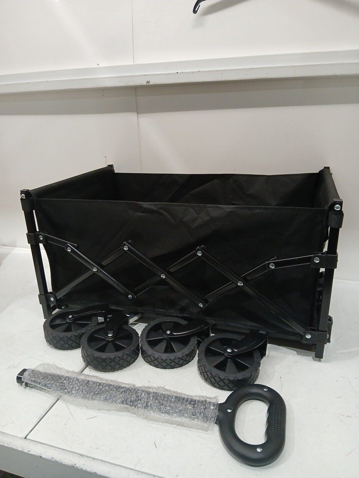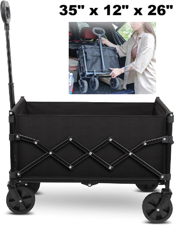 RYGEO Festival Trolley Foldable Utility Wagon Cart with Wheels and Telescopic Handle- 35" x 12" x 26" - black