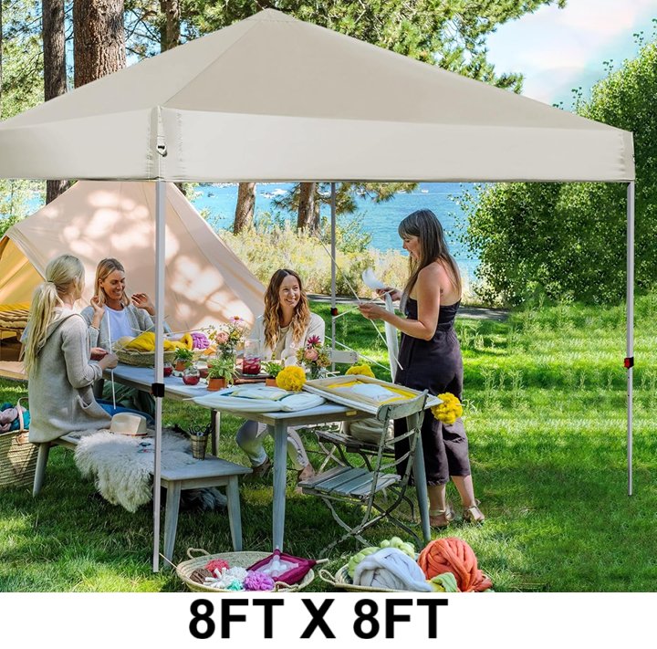 pop up canopy tent portable bag waterproof with adjustable straight legs - 8ft x 8ft - silver/white